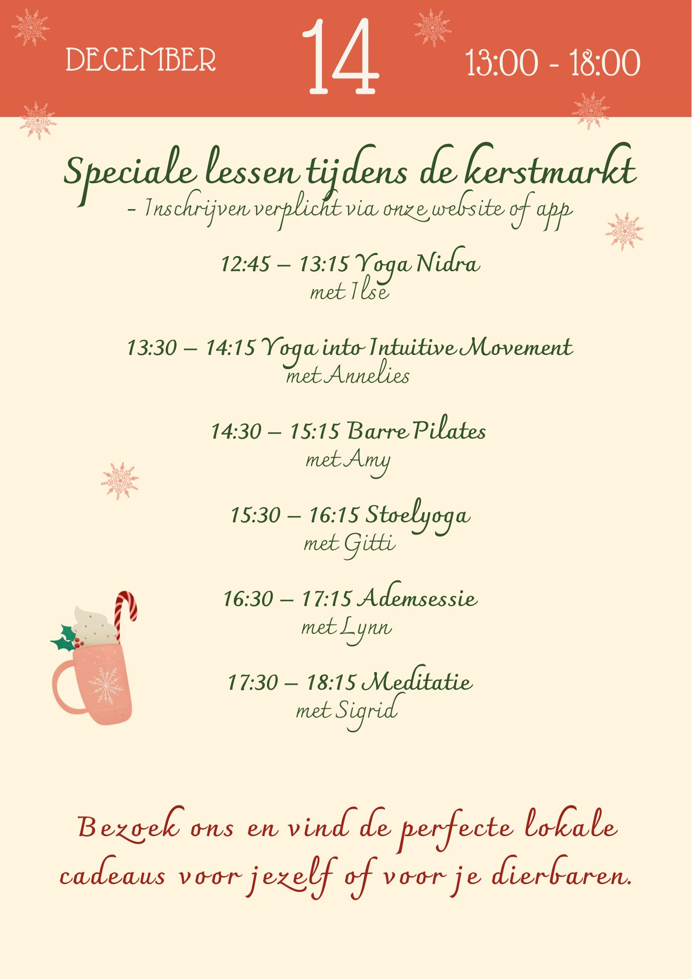 Yogalessen, workshops, events en individuele coaching.